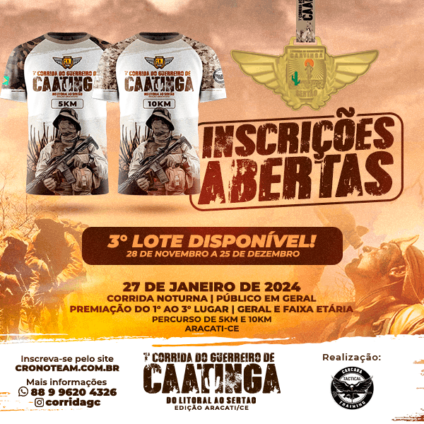 - 3º LOTE - 28/11 até o dia 25/12 (ou atingir o limite de inscritos)