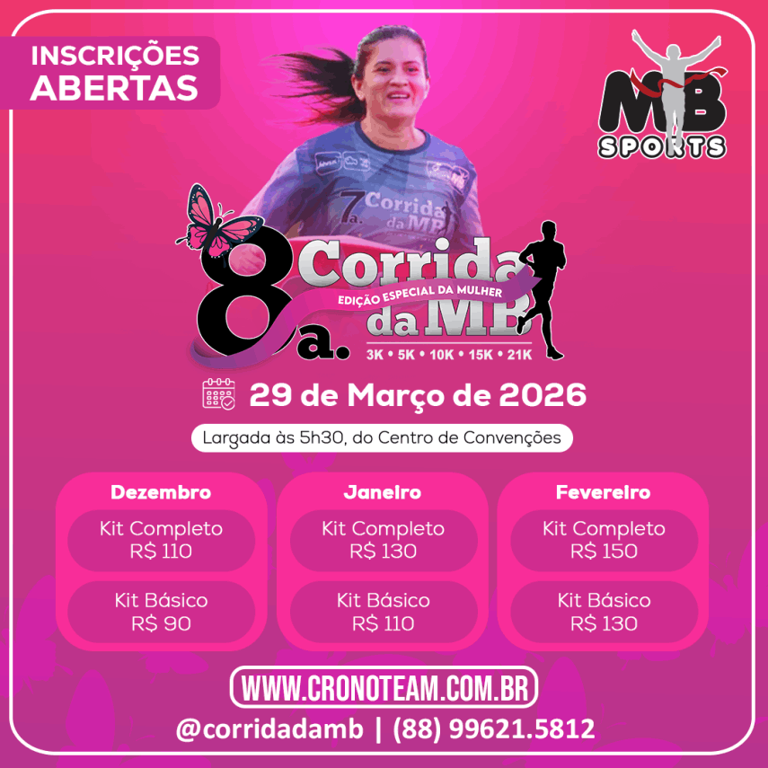 Artigo 1º. A 8a. Corrida da MB - Edição Especial da Mulher, aqui denominada corrida, será realizada no dia 29 de março de 2026.