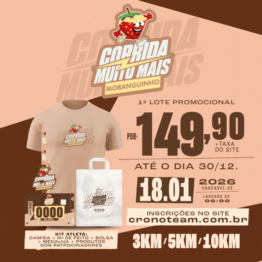 1.1 - A CORRIDA MUITO MAIS – SUPERMERCADO MORANGUINHO - 2026 é uma iniciativa da rede de Supermercados Moranguinho, de caráter esportivo, social, participativo e competitivo que tem como principal objetivo fomentar a prática de atividades físicas saudáveis e a busca pela qualidade de vida e não ao sedentarismo através da Corrida de Rua entre os clientes e colaboradores da empresa.